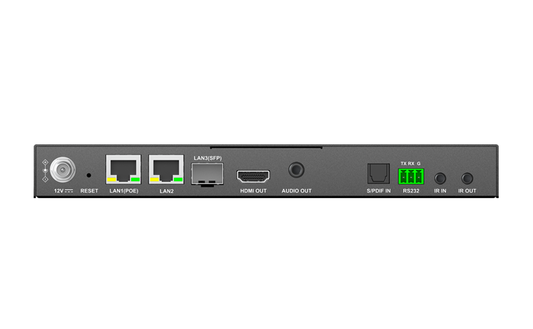 The IPD-5100 series decoders are designed to work with IPE-5100 series encoders for UHD media up to 3840 x 2160@60Hz 4:4:4 to be switched and distributed over standard Gigabit Ethernet networks, providing complete end-to- end streaming systems, where audio, video together with USB, RS232 and IR signals can be routed separately or as a whole. Equipped with Dante technology, they realize perfect interconnectivity and interoperability with Dante audio systems.