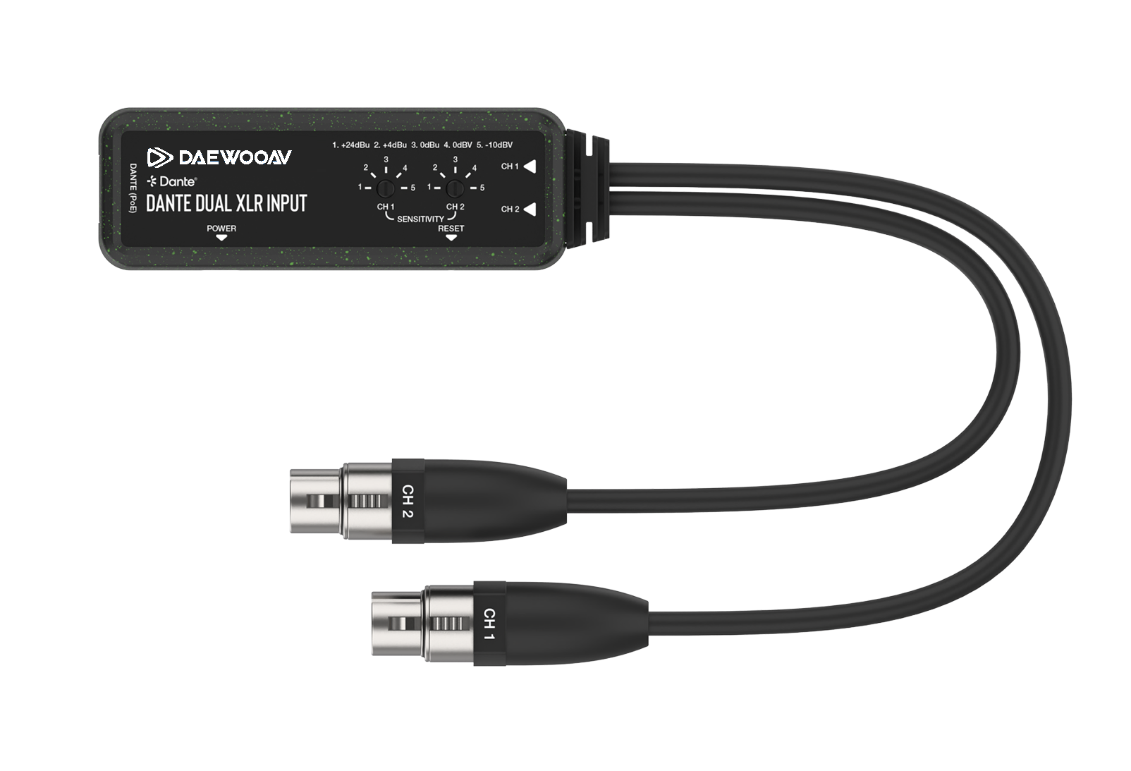 Dante® 2CH Analog XLR Input Adapter utilising the advanced Dante® 2×2 technology, this adapter seamlessly transforms two-channel balanced or unbalanced analog XLR signals into high-quality Dante® Digital Audio.