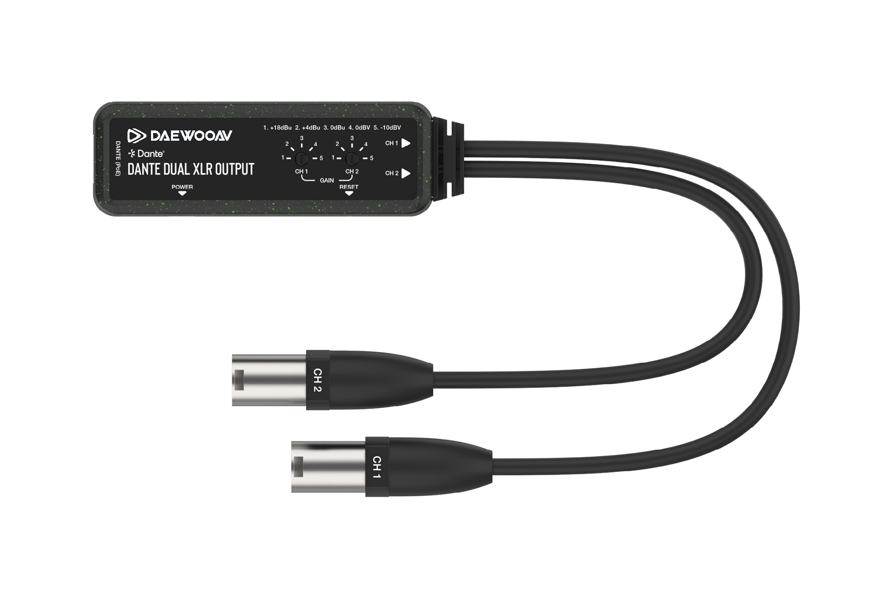Dante® 2CH Digital-to-analog adapter, designed to deliver two channels XLR analog output. Leveraging the advanced Dante® 2×2 platform, this adapter seamlessly converts Dante® digital audio into balanced or unbalanced two-channel XLR analog signals.