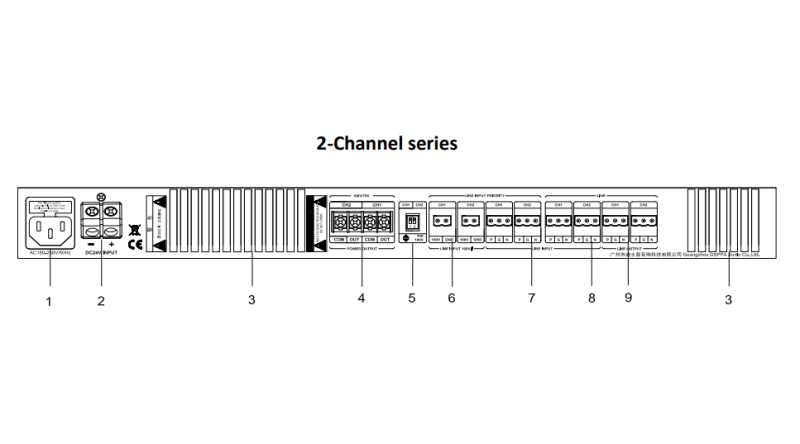 | Indicators | “Protection”,“Limit”,“Voltage limit”,“Signal”,“70V gear” |