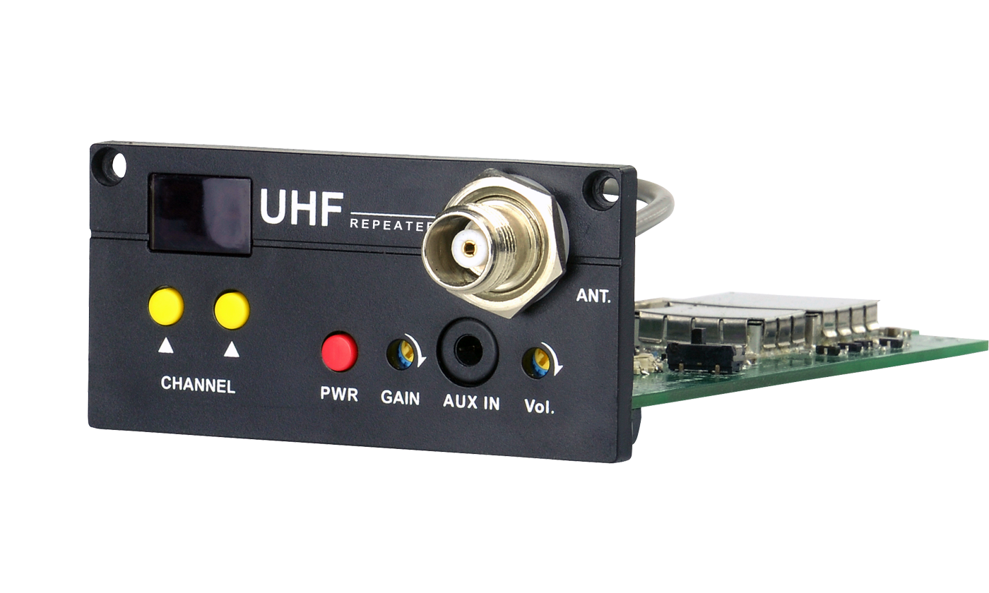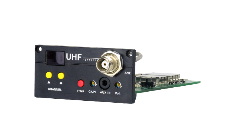 DWS-821M is a UHF 100-channel Relay Transmitter Module designed to interlink wireless audio transmission, suitable for various applications. Operating in the UHF 500 - 960 MHz range, it offers exceptional compatibility and stable performance, making it an ideal choice for wireless systems.